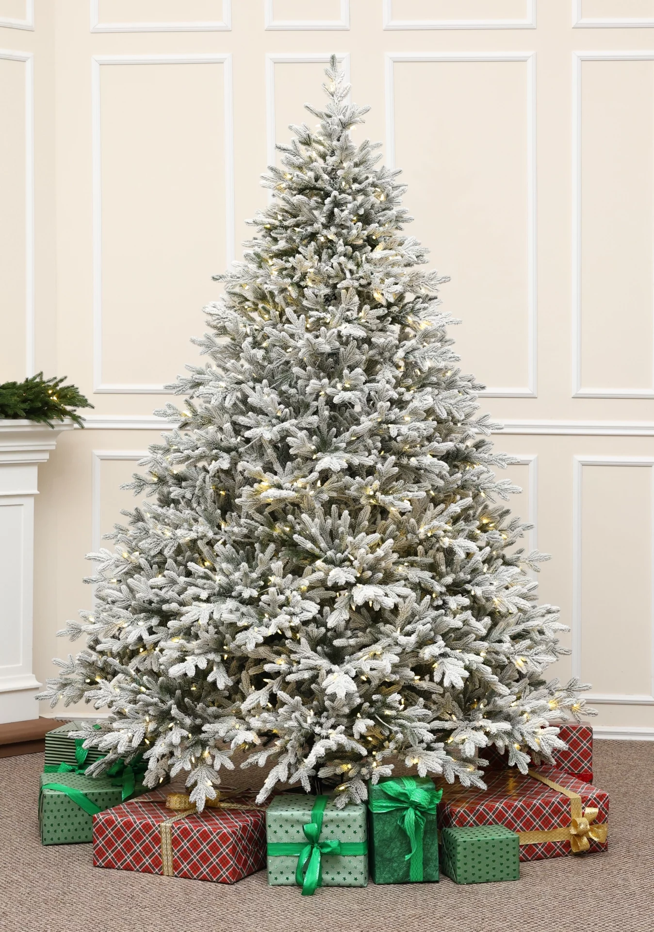 A 270 cm-es havas LED-es Alpine Fraser Snowy egyszerre természetes és ragyogó, eleganciát és mesebeli hangulatot csempészve a karácsonyi dekorációba.