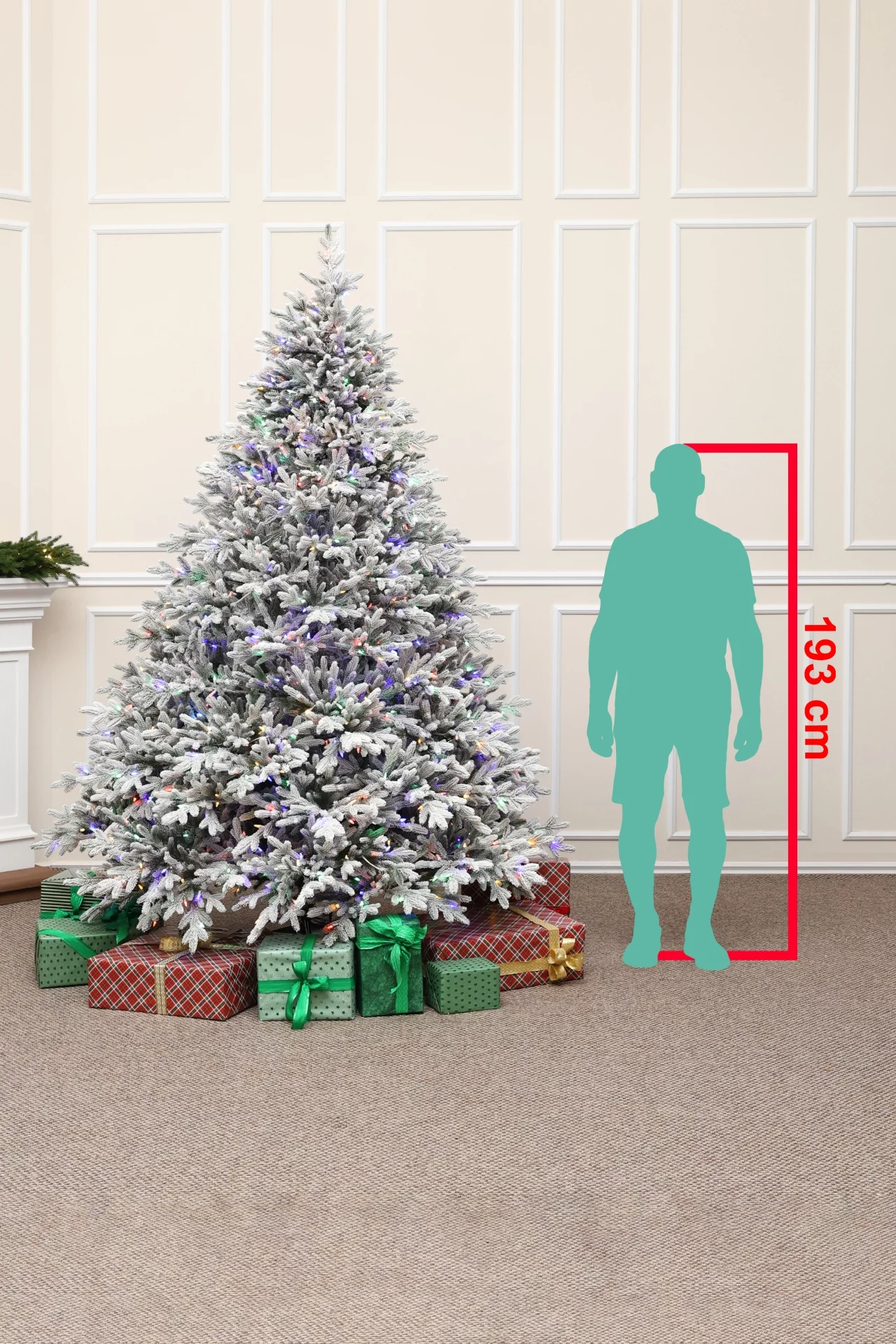 270 cm – tekintélyes méretű karácsoynfa, amely betölti a teret és domináns eleme lesz a dekorációnak.