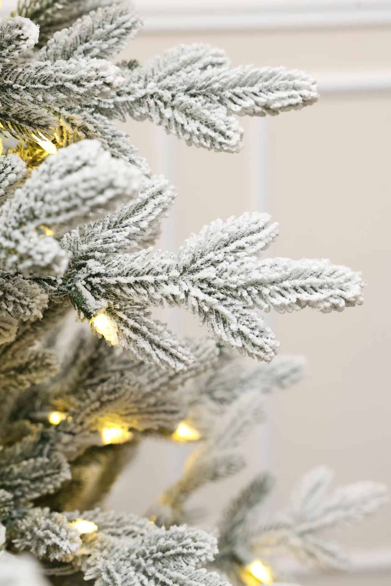 Alpine Fraser Snowy havas LED-es műfenyő – ragyogó fények, téli elegancia.