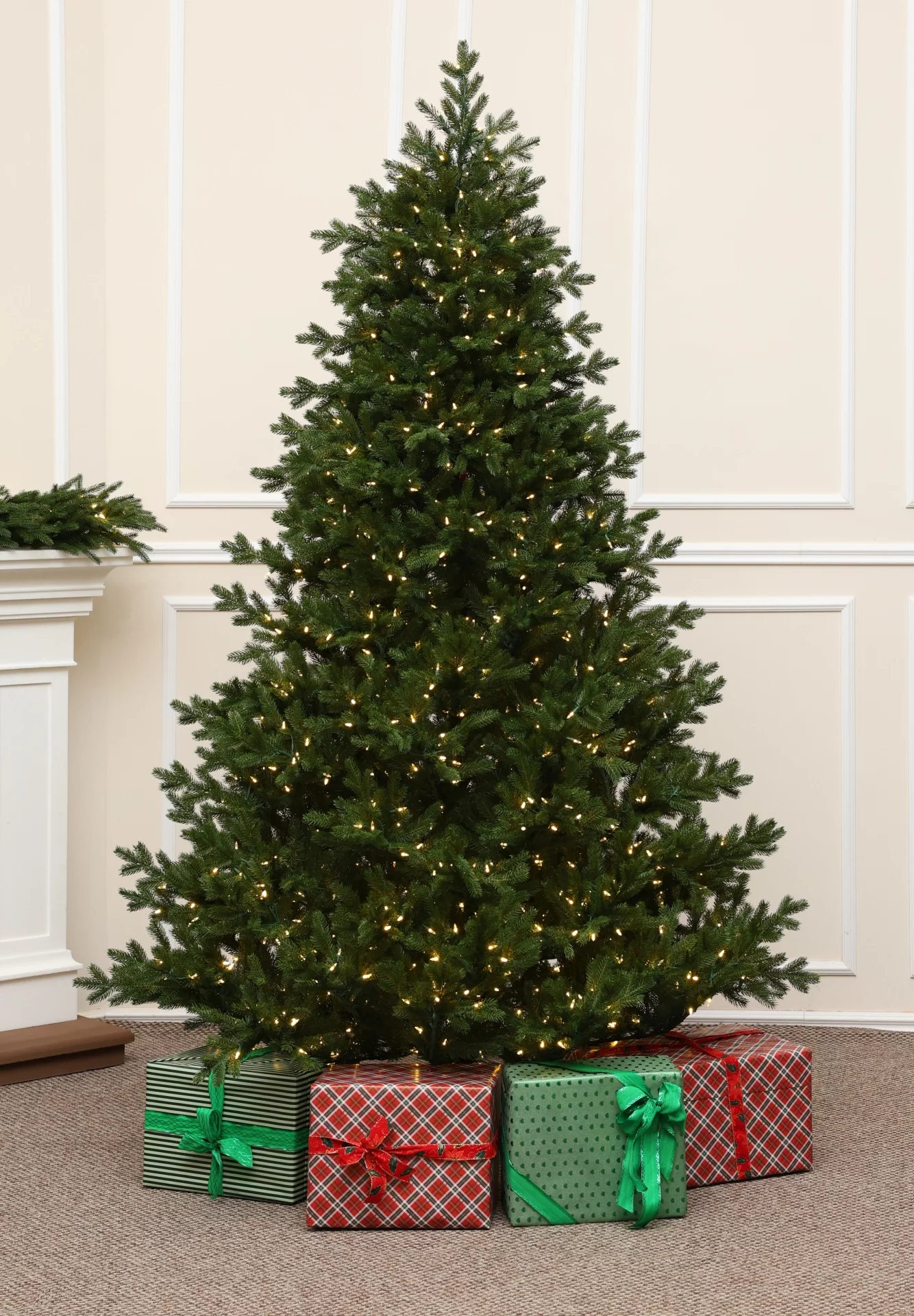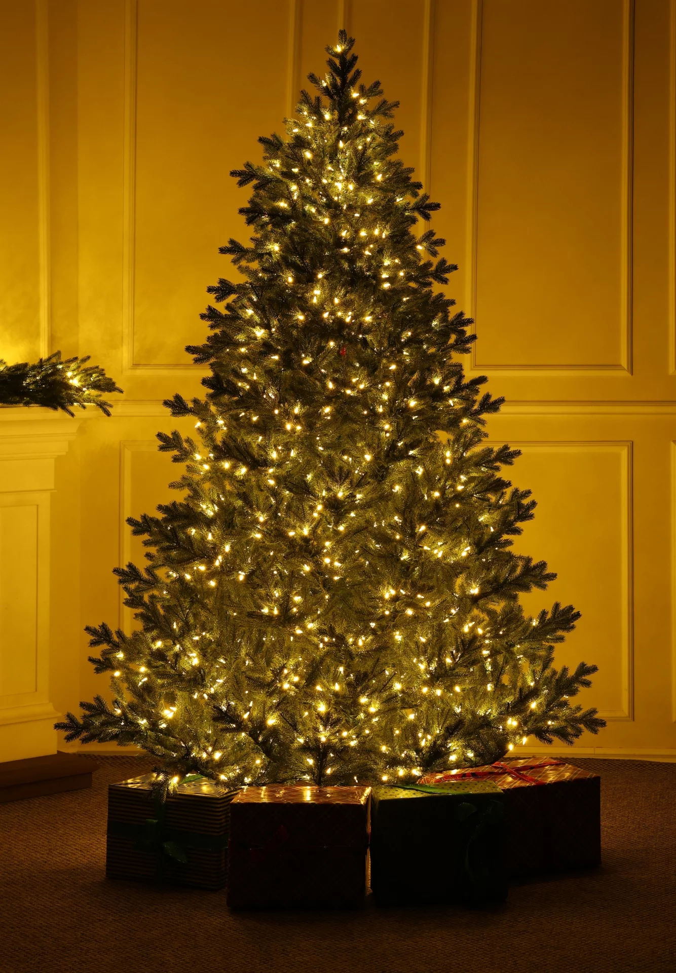 Grandis Fir műfenyő LED világítással – természetes elegancia fényekkel.