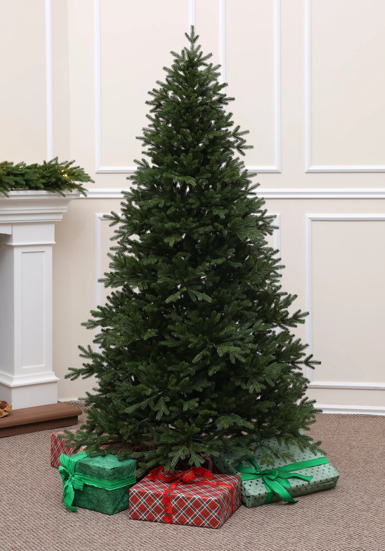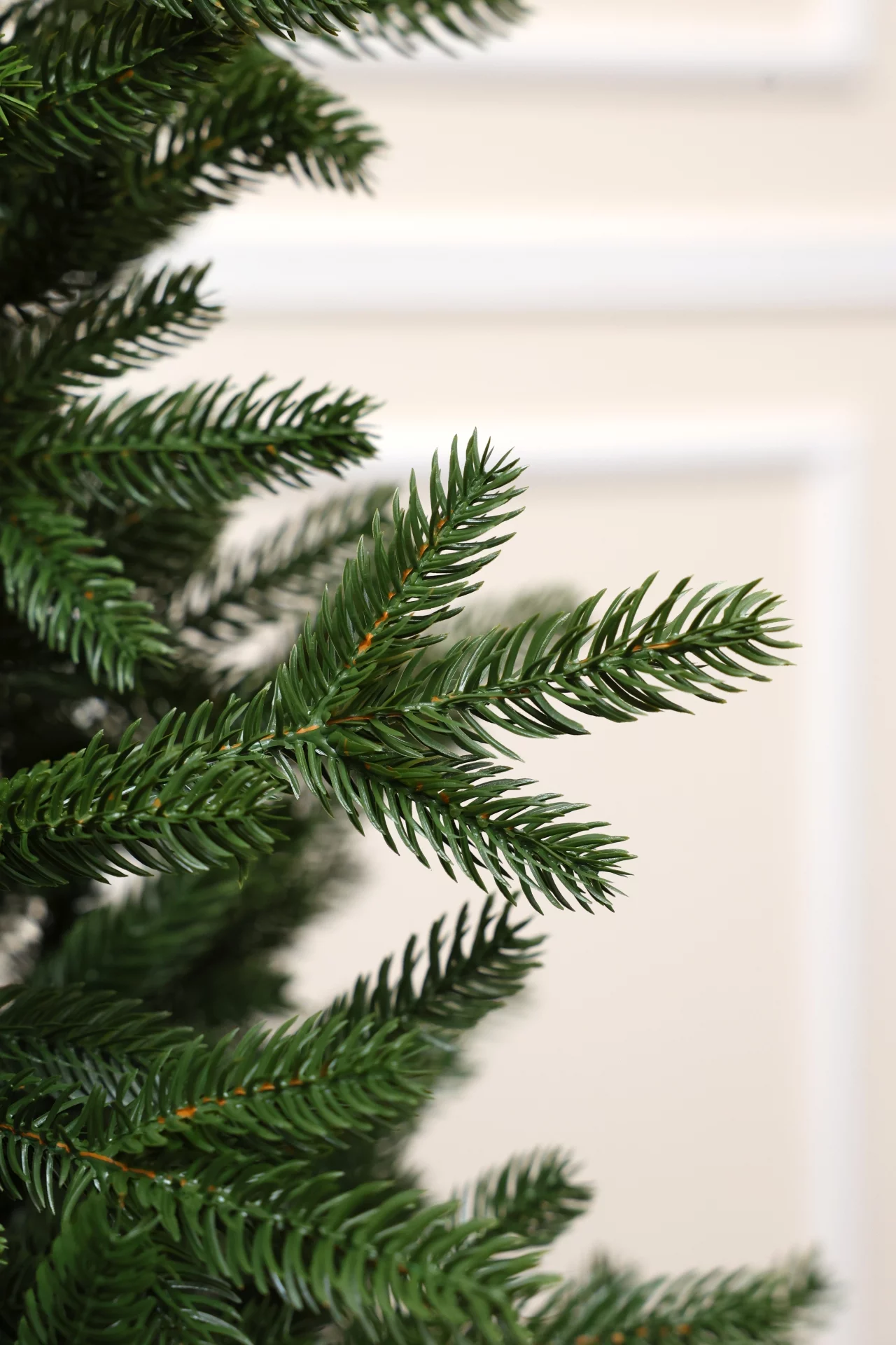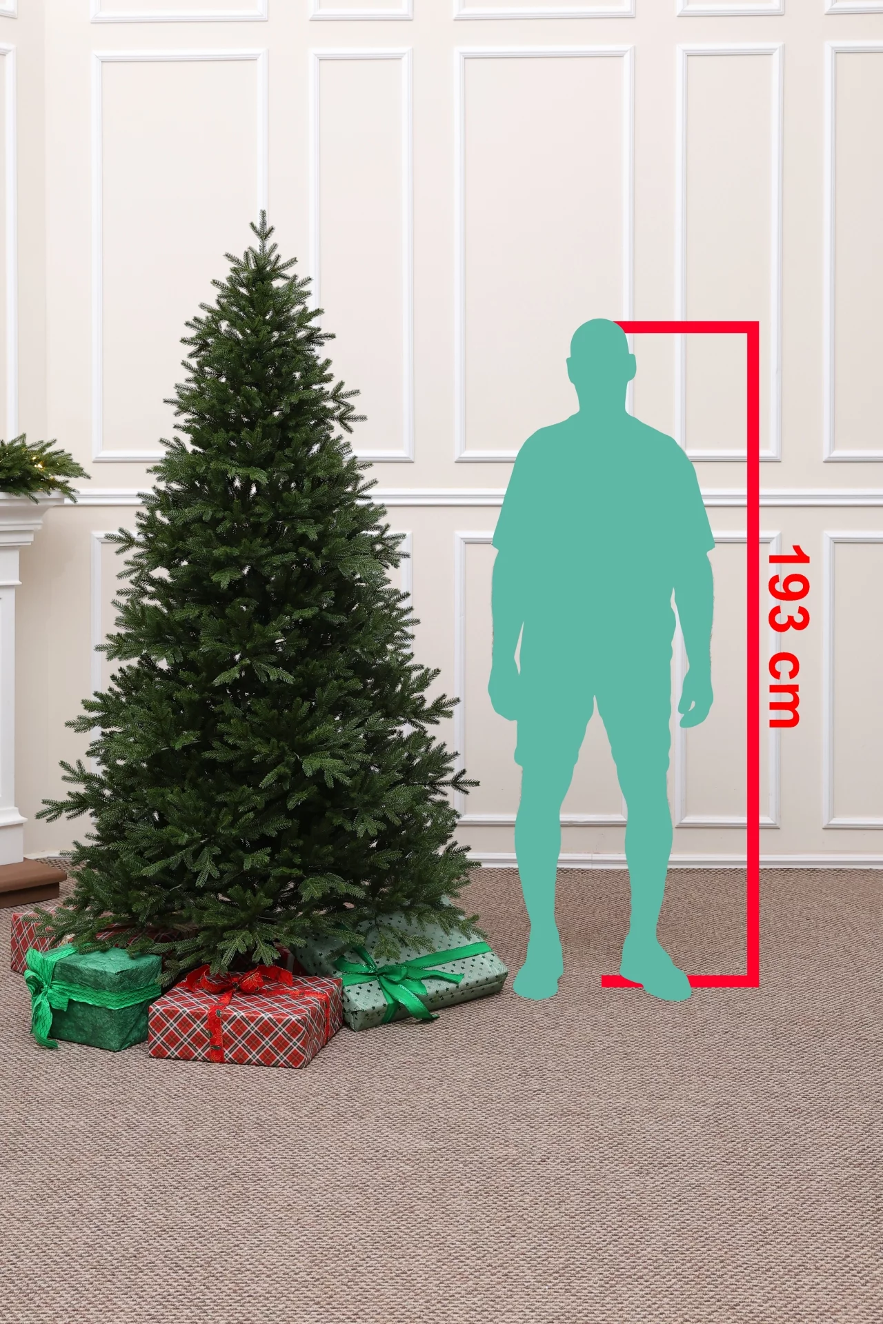 A 215 cm-es Balsam Fir tekintélyes, mégis barátságos méret, amely minden otthonba tökéletesen illeszkedik, és ünnepi hangulatával betölti a teret.